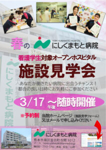 来年度卒業予定の看護学生向けに3月17日より随時施設見学会を行います。